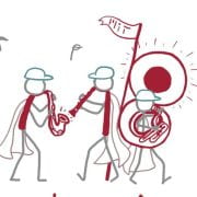 Welcome to the MIT Marching Band! Our group is composed of students from a wide variety of backgrounds who enjoy having fun and performing music. We try to perform regularly at MIT home football games, basketball games, and lacrosse games. We have also appeared recently at rugby, water polo, volleyball, quidditch, baseball, and field hockey games. We have even performed a “Marching Band on Ice” show between periods of an ice hockey game! We’re a small little band, ranging from about 8 to 20 people, but we do our best with who we’ve got!